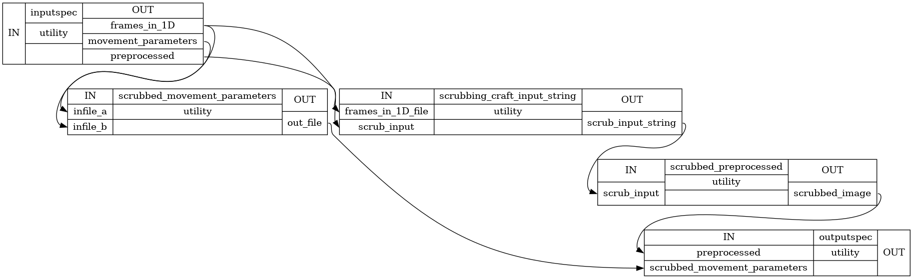 outputspec.preprocessed : string (nifti file) preprocessed scrubbed output image outputspec.scrubbed_movement_parameters : string (mat file) path to 1D file containing six movement/motion parameters for the timepoints which are not discarded by scrubbing